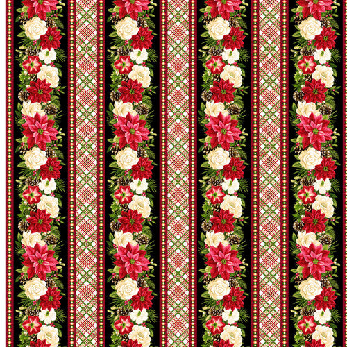 Plaid & Poinsettias Repeating Stripe